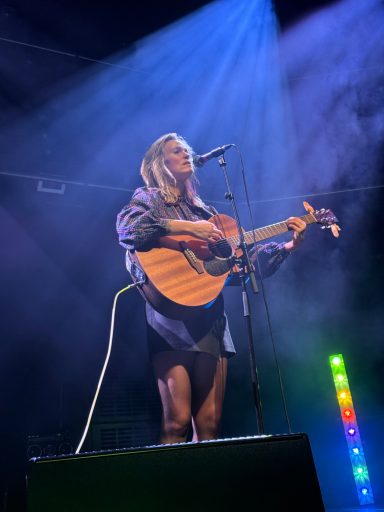 The setlist mixed new with now-classics such as ‘Life’s Unfair’, ‘Plans’, ‘No’, ‘Gas’, ‘Pornos’, ‘Knives’, ‘Blue Bones’, ‘Hippy Elite’, ‘Spite’ (a personal favourite), and ‘The Test’. ‘Dark Horse Friend’ became a crowd call-and-answer for which Tor drove the room like a conductor. Then a left turn; ‘Strange Gift’ with the acoustic guitar, for which the transition from kinetic bounce to pin-drop focus was breathtaking. You’d never have guessed she’d been jumping around for the previous nine or ten tracks. Her control and presence were immaculate.